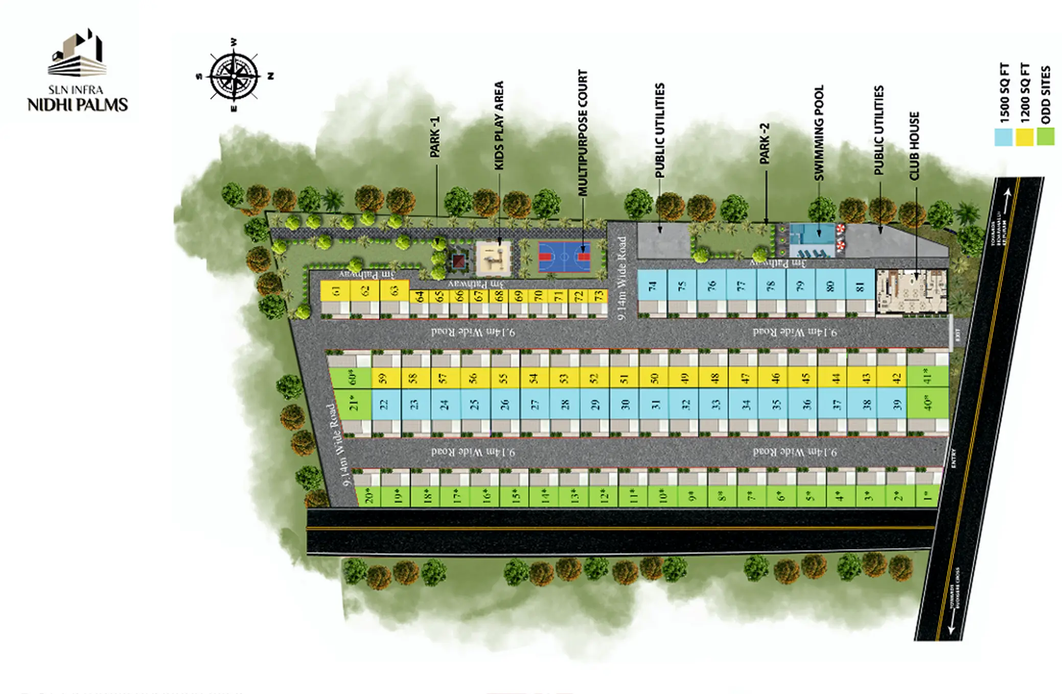 A lavish villa venture at Budigere Cross, East Bangalore. With only 83 exclusive units, spread in 5 acres, Nidhi Palms blends modern elegance with serene greenery. With Excellent construction quality, SLN Nidhi Palms is the go to villas in Budigere Cross and the best branded specifications and fixtures. Smart home provisions, private gardens, and Vaastu-compliant floor plans make it a community crafted for the elite.